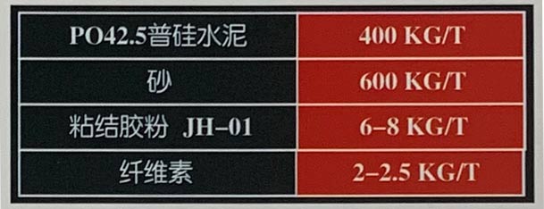 Construction standard: prohibit the construction below 5 degrees, a mixing material is best completed within 30 minutes, bond thickness 3-5 mm, 28 days can achieve 80% solidification bonding effect.